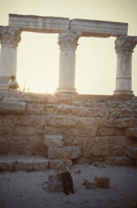 Our son Michael turned four about the time of this trip. Here are two photos of him and ancient Corinth. The one to the left by the remains of an ancient temple (Venus) and the one to the right in the remains of ancient housing.