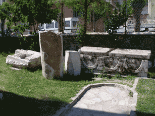Scattered Ancient Ruins. These are pieces of grave stones and buildings that are scattered around the grounds of the area. The letters on the item to the right are still clear enough to read.