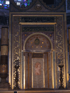 Inside the Hagai Sophia. The Mural to the right looks the same as one in Cappodocia and this is apparently a remake of Cappadocian original.