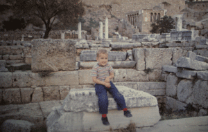 Our son Michael turned four about the time of this trip. Here are two photos of him and ancient Corinth. The one to the left by the remains of an ancient temple (Venus) and the one to the right in the remains of ancient housing.