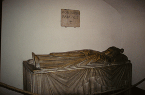 This is the outside of the casket of Pope Boniface VIII. He was the bishop of Rome from 1294-1303. St. Peter's basilica is full of the bodies of dead Roman bishops.