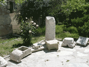 Scattered Ancient Ruins. These are pieces of grave stones and buildings that are scattered around the grounds of the area. The letters on the item to the right are still clear enough to read.