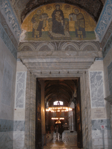 Inside the Hagai Sophia. The Mural to the right looks the same as one in Cappodocia and this is apparently a remake of Cappadocian original.